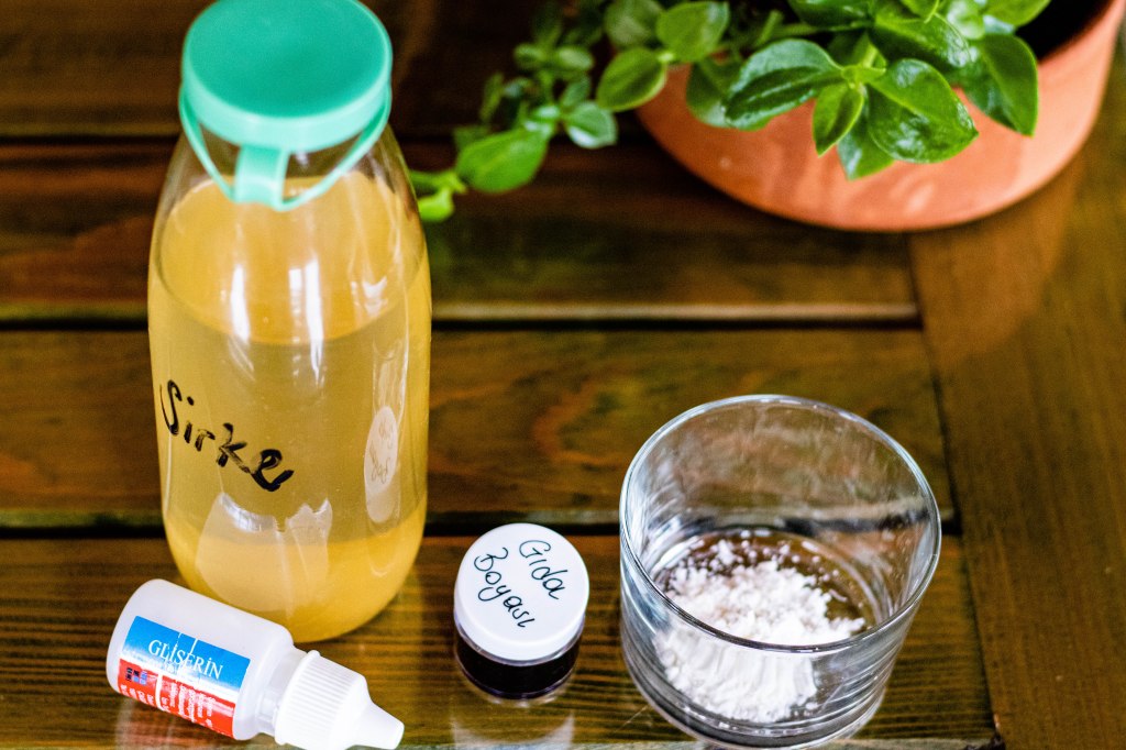 - Sirke ve gliserini de karışıma ekleyip ısıtmaya başlıyoruz.