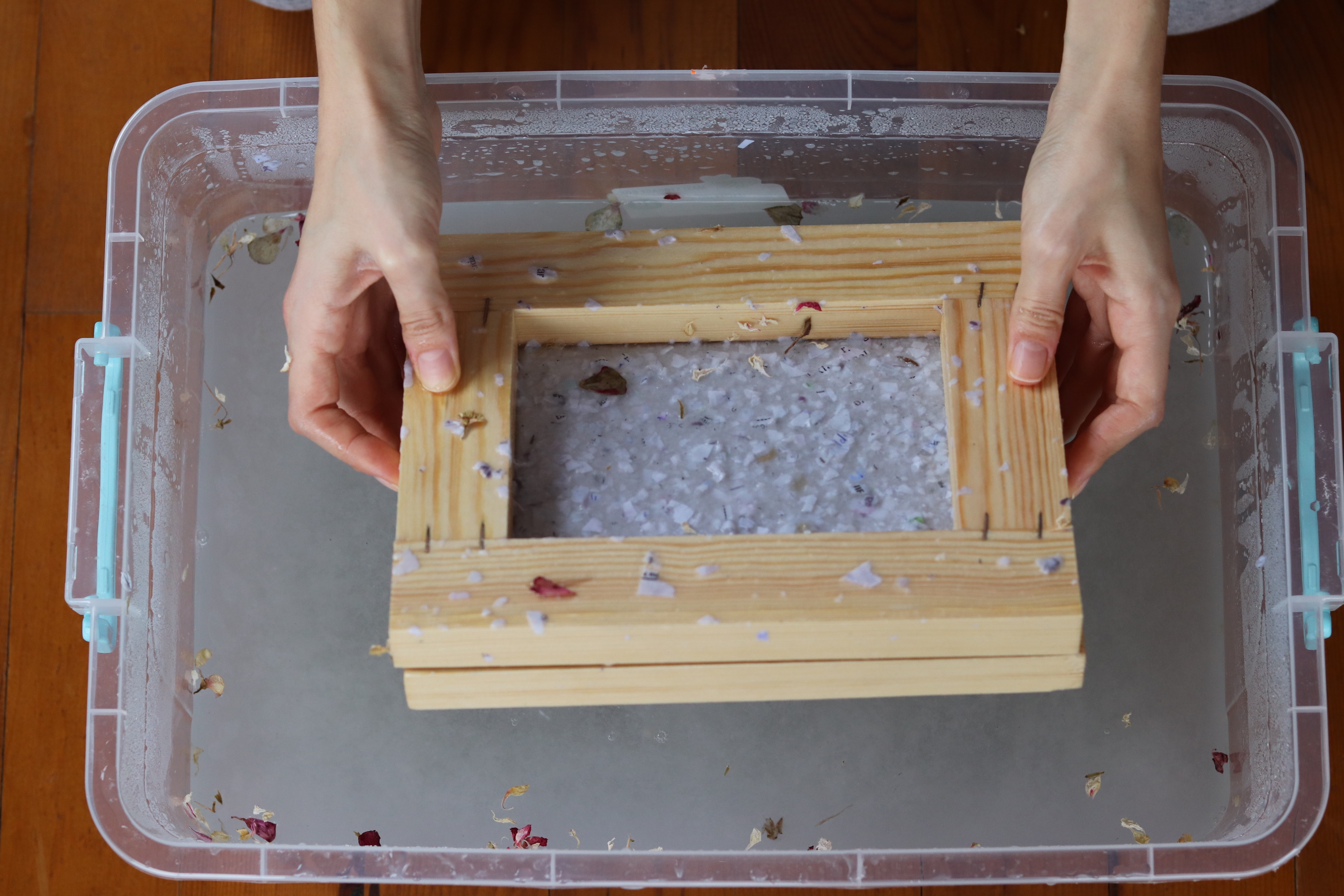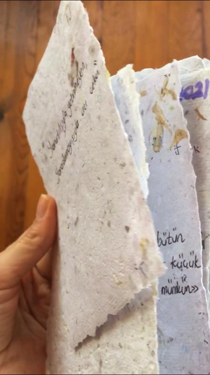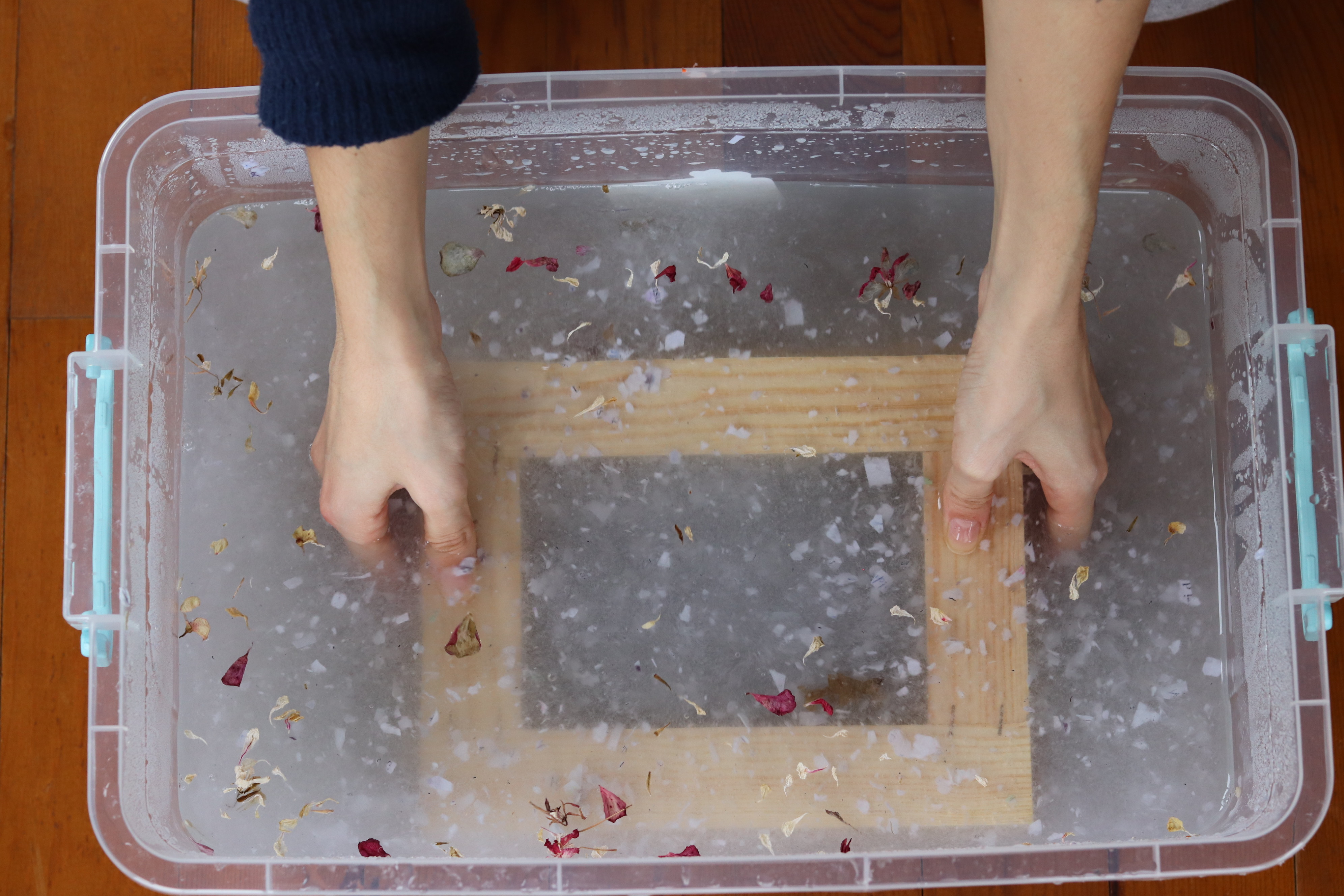 Kağıtların iyice içi dışına çıkmış ve suyun rengi bulanıklaşmışsa her şey yolunda, süperiz demektir. Hatta kağıtlarımızı çiçeklendirmek adına kovaya kurumuş çiçekler serpiştirebilir; renklendirmek adına da bitkisel kaynaklı renklendiriciler kullanılabilir.
