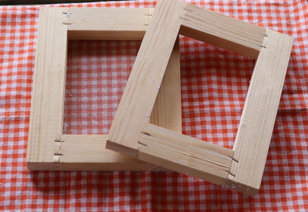 İki adet aynı ölçülere sahip çerçeve kullanıyoruz. Tek fark çerçevelerden birinin ince bir telle elek görünümü kazanması 🙂